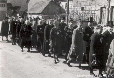 Hochzeit von Adam und Lotte Roth geb. Fischer am 22. 04. 1950 am Gasthaus zum Adler. Adam Roth war Schuh - Einzelhändler und hatte 29 Jahreein Geschäft in Schwaikheim. Adam Roth war einer der ersten Heimatvertriebenen, der in Schwaikheim heiratete. Wie viele Heimatvertriebene baute er am "Schuldenbuckel" der Keltersiedlung sein Haus.